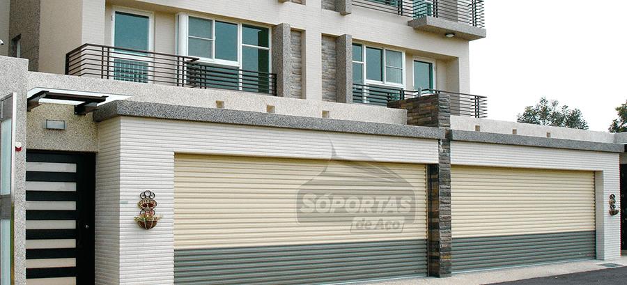 As portas de aço de enrolar e as portas de ferro de enrolar são as mais utilizadas devido à resistência mecânica e à durabilidade, podendo receber acabamentos variados e até recursos de ventilação ou transparência.